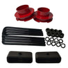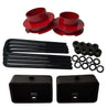 All contents of this kit are made in America by Road Fury and manufactured from only the finest materials. Each item is thoroughly tested for supreme quality, top-notch performance, and strict road safety requirements. Select your preferred front and rear lift heights, ranging from 1.5" to 3." Front spring spacers are available in black, blue, or red to truly customize your ride. The escorting u-bolts are square bend to match mating components and can be trimmed for different applications.