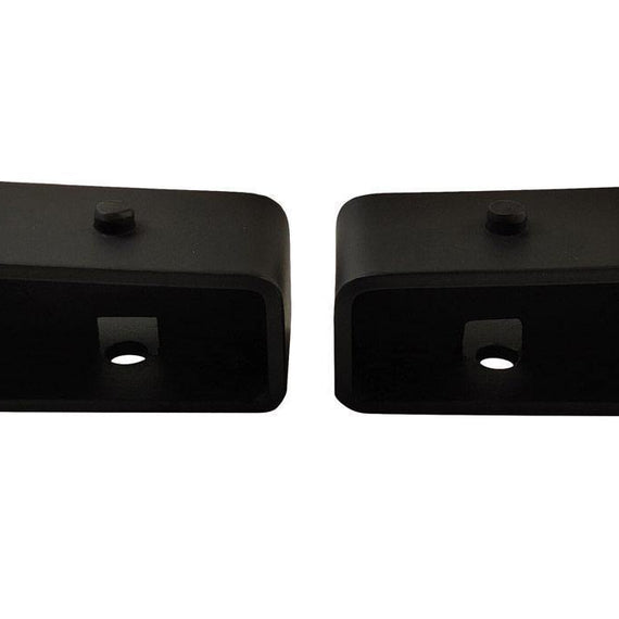 Our Chevrolet Silverado 1500HD 2WD 4WD rear steel tapered lift blocks will not adversely affect your ride quality and can be used with add a leafs or on their own. Made from premium solid steel, our lift blocks are designed for the rear of your Chevy truck only. The tapered construction includes precision pinion alignment for a perfect fit and may reduce unwanted noise and vibrations. The black finish acts as a barrier to protect the blocks from rust and corrosion, extending quality and lifespan.