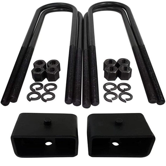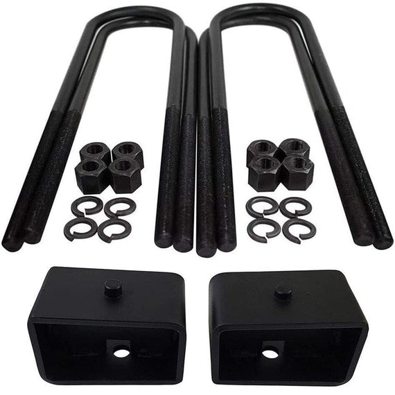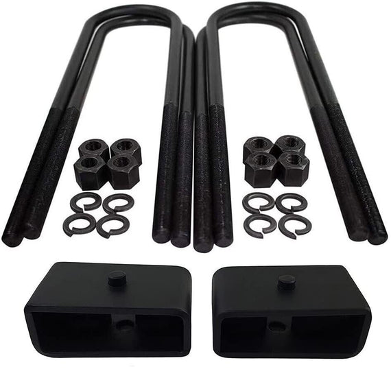 - CONTENTS: 4x certified carbon steel u-bolts with grade 8 hi-nuts, security spring washers, 2x Rear Lift Blocks, and Installation Instructions