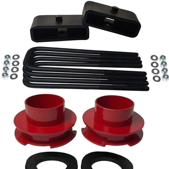 - KIT CONTENTS: 2x Laser Cut Carbon Steel Spring Spacers, 2x Sound Isolators, 2x Rear Lift Blocks, 4x Extended Round 3.5" u Bolts and Installation Instructions