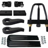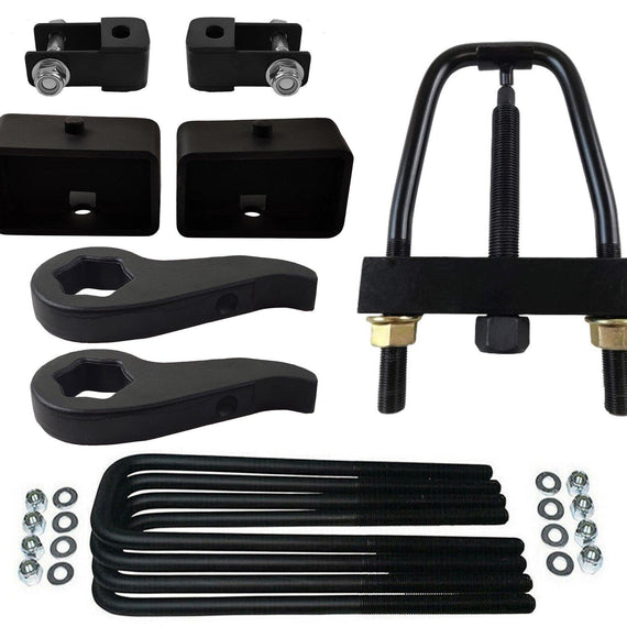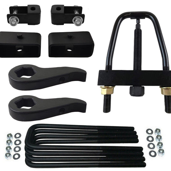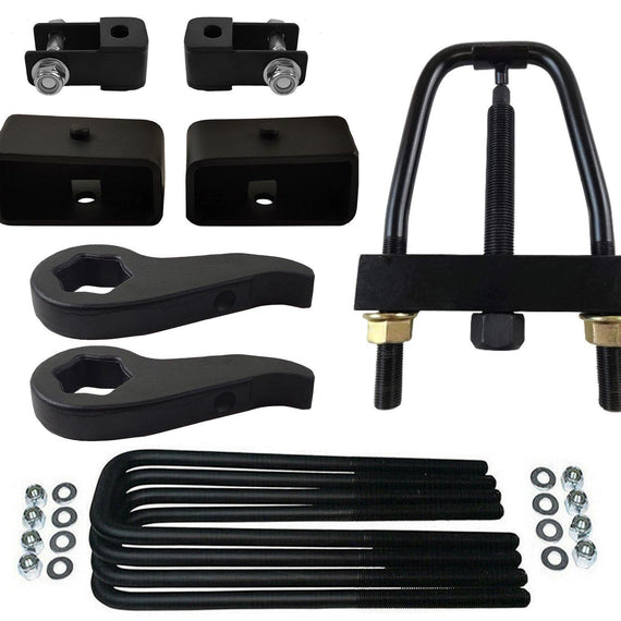 - KIT CONTENTS: 2x Torsion Keys, 2x Shock Extenders, 2x Tapered Steel Lift Blocks, 4x 15.75" L Steel Square U-bolts, 1x Install Tool, Installation Hardware, and Installation Instructions.