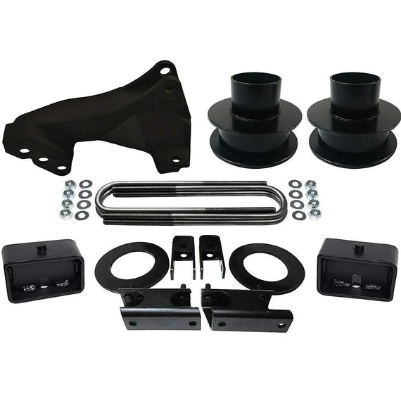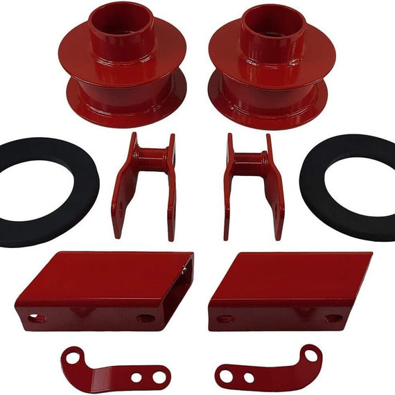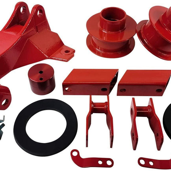 - KIT CONTENTS: 2x Steel Spring Spacers, 2x Shock Extenders. Sway Bar Drop, 2x Sound Isolators, 2x Brake Relocation Brackets, Track Bar Bracket, and installation instructions