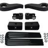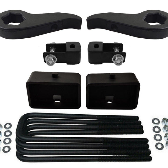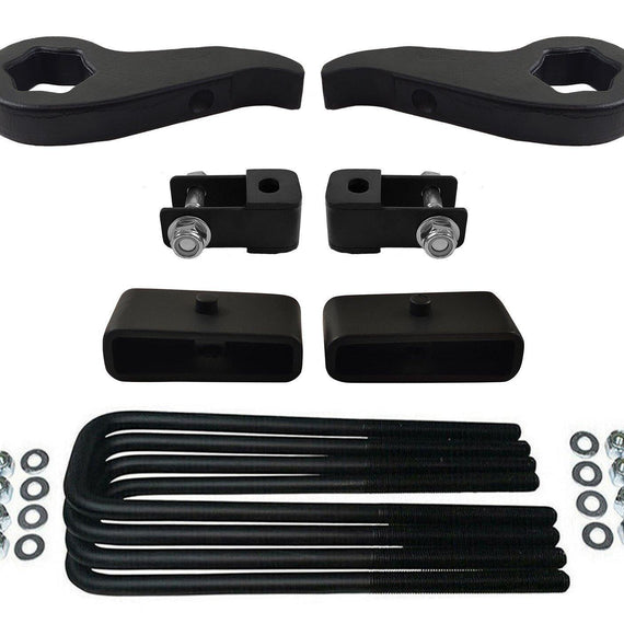 - KIT CONTENTS: 2x Torsion Keys, 2x Shock Extenders, 2x Tapered Steel Lift Blocks, 4x 15.75" L Steel Square U-bolts, Installation Hardware, and Installation Instructions.