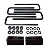 - KIT CONTENTS: 2x solid cast iron lift blocks, 4x certified carbon steel leaf spring axle u-bolts with grade 8 hi-nuts, security spring washers, and installation instructions