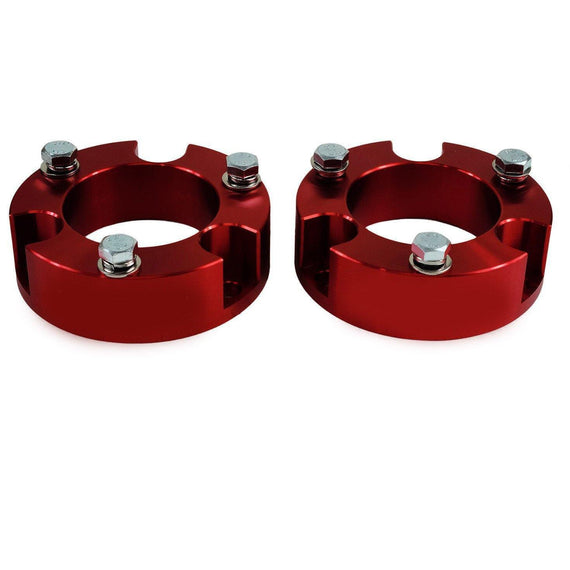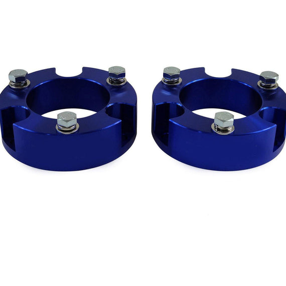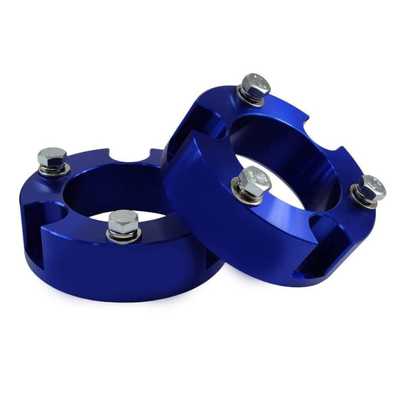 The Toyota Tacoma 4WD billet front strut spacers with differential drop kit is an efficient front lift and leveling solution. This combo kit will translate to improved ground clearance, enabling you to install larger tires to take on tough off-road trails. This front lift kit will not change the ride quality for comfortable navigation on unfamiliar terrains. The strut spacers are precision machined from solid heavy-duty billet aluminum for reliable construction and peak performance and hard anodized in black, blue, or red. The differential drop kit is fabricated from the same billet aluminum material and will realign your differential back to its factory configuration without causing any joint wear.