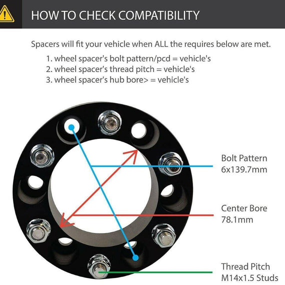 Please make sure you take the proper measurements before purchasing. Your factory wheel studs may need to be shortened to ensure safe fitment of the wheel.