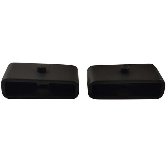 Sold as a pair, these blocks are fabricated for a straightforward bolt-on installation without the need for cutting or permanent modifications. Design includes the right taper to correct pinion and centering studs to prevent slippage. These blocks are fully reversible if required. For customer's assurance, the lift bocks are warranted to be free of defects in material or workmanship.