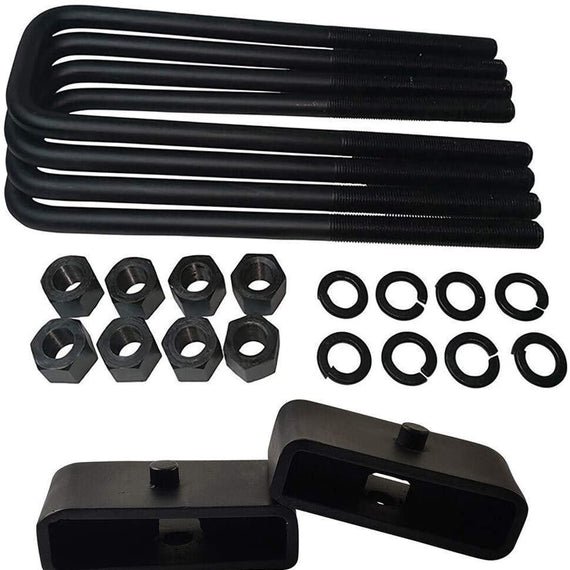 - KIT CONTENTS: 2x US certified steel lift blocks, 4x OEM grade steel leaf spring axle u-bolts with grade 8 hi-nuts, security spring washers, and installation instructions