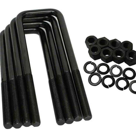 - KIT CONTENTS: 2 laser cut carbon steel spring spacers, 2 rear lift blocks and 4 extended u bolts