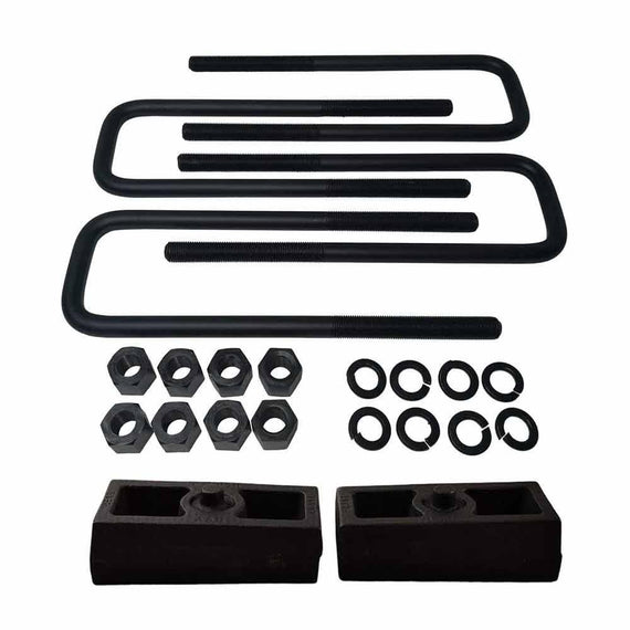 - KIT CONTENTS: 2x solid cast iron lift blocks, 4x certified carbon steel leaf spring axle u-bolts with grade 8 hi-nuts, security spring washers, and installation instructions