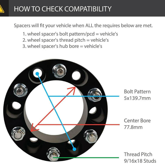 Please make sure you take the proper measurements before purchasing. Your factory wheel studs may need to be shortened to ensure safe fitment of the wheel.